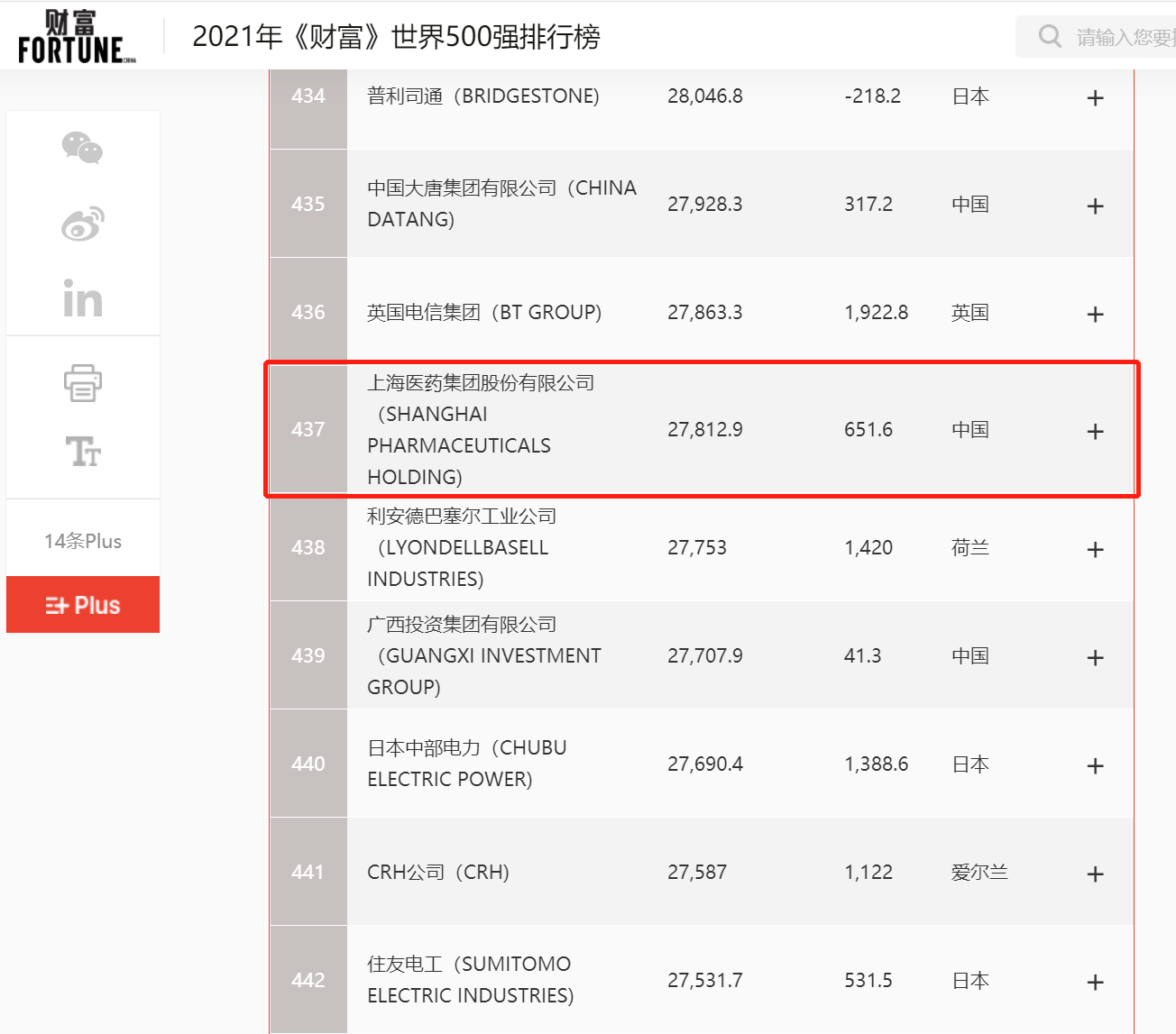 2021年8月2日,《財富》雜志正式發(fā)布“2021年《財富》世界500強排行榜單”,上海醫(yī)藥集團(tuán)股份有限公司(601607.SH,02607.HK,以下簡稱“上海醫(yī)藥”)再次上榜,位列第437位。這也是繼2020年首次入選后,上海醫(yī)藥再度憑借自身實力強勢登榜,排名躍升36位。
